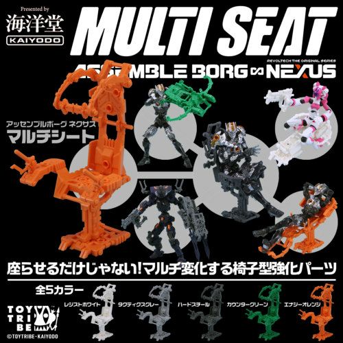 マルチシートはセンサーやコンソールなど、複数のパーツで構成されています。基本形態の他、座面など各部を組み替えることでベッドや大型武器など様々な形態に変形します。パーツそれぞれも独立した強化パーツとして機能するので、正に遊び方は無限大。座って落ち着くのも良し、装備して戦うのも良し、自由な発想で物語を創造しよう!