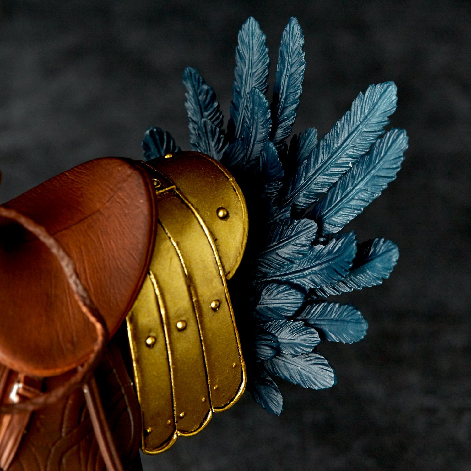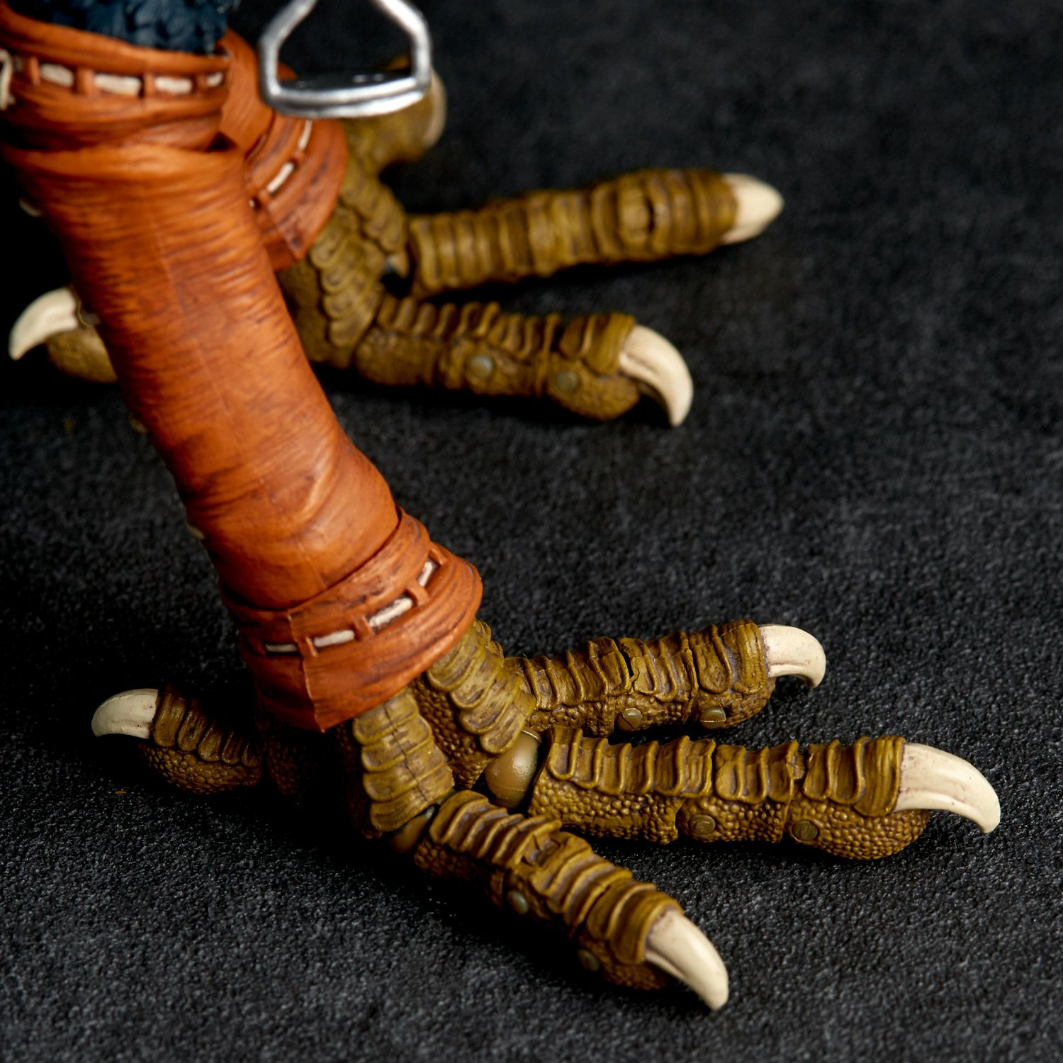 人間や荷物を載せて馬のように疾走することができる強靱な脚力を持つ架空の生物であるトリウマに説得力を持たせるべく、タケヤ式自在置物で実在の生物感を思わせるディテールを追加。黒に近い羽毛と長い首、大きく膨らんだクチバシなどの特徴をそのままに、鳥類らしい骨格形状やフォルムのバランスを取って立体化されている。羽毛は一枚ずつモールドすることで、さらなる鳥類らしい存在感を追求。爪先部分は猛禽類のような鋭さとダチョウのような力強さを併せ持たせた形状の生物的なディテールが加えられた。まさに、劇中のイメージをそのままに、竹谷隆之ならではのアレンジによって、架空の生物を実在するようなアプローチで表現したアイテムとなっている。