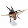 展開した大きな後翅も全体にしなりを加えた正に飛翔中のイメージ、付属のベースに取り付ければ巨大クワガタの飛翔する様を楽しむことができます。