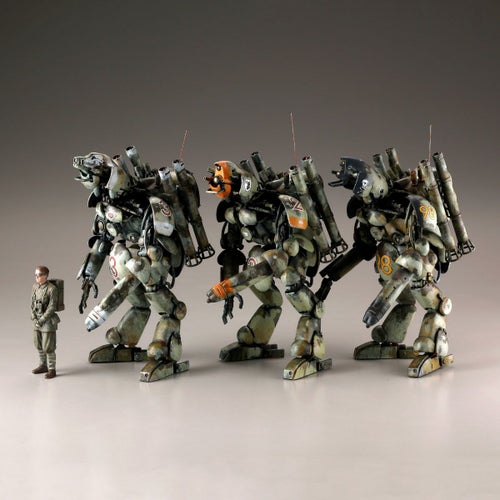 背部のパンツァーシュレックを2連装×2基に強化し、肩アーマーを大型化したキュクロープ。頭部に高性能索敵シーカーを装備したダックスフント。フェイスガードを装備したダックスフントの3機種がそろい踏み!