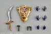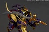 全身を覆う甲冑は装飾部分のゴールドに加え、本体部分を深みのあるメタリックのパープルで塗装。ヘルメットから伸びる飾りも美しいメタリックレッドで、幻想的な姿を表現しました。