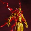 アメイジング・ヤマグチでは、黄色の全身スーツに赤い稲妻のシンボルというフラッシュのカラーリングを反転させたコスチュームを、メタリックな塗装で再現。マスクの塗装もシャドー塗装で額のシワを際立たせ、ヴィランらしい迫力を演出してあります。全身からほとばしる赤い稲妻のエフェクトパーツ、山口勝久独自の可動ギミックによる表現力の高いアクションも、もちろんフラッシュと同等!
